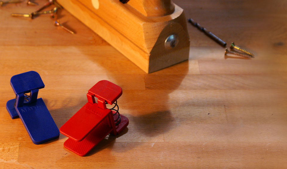 Es gibt sie doch. Die Dinge, die einem das tägliche Leben erleichtern. Eines dieser Dinge ist die neue, patentierte Mattes Kantenklammer. Sie beseitigt ein Ärgernis, das in fast jeder Tischlerei auftritt: den komplizierten und oft zeitraubenden Umgang mit angebrochenen Rollen von Kantenanleimern. Und zwar viel einfacher und wesentlich preisgünstiger als ein ausgeklügeltes Rollenmagazin.